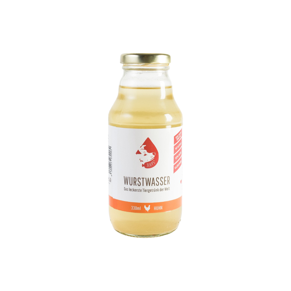 • SLUPS WURSTWASSER – Ist ein Ergänzungsfuttermittel in den Geschmacksrichtungen Huhn und Rind ist das leckerste Tiergetränk der Welt!